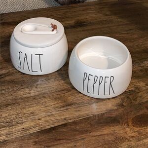 Rae Dunn White Ceramic Stacking Salt & Pepper Cellar (with small spoon) Decor