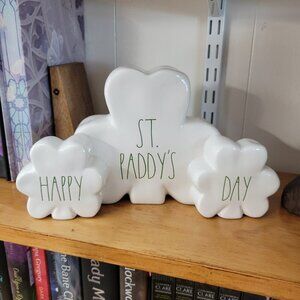 Rae Dunn White Green Happy St. Paddy's Day Shamrock Ceramic Decor
