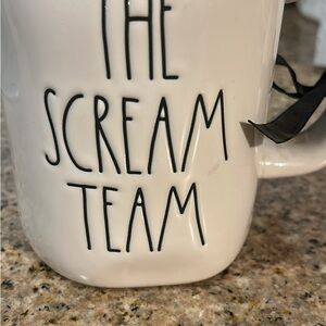 Rae Dunn mug featuring playful Monsters Inc. characters. Ideal for coffee lovers.