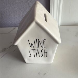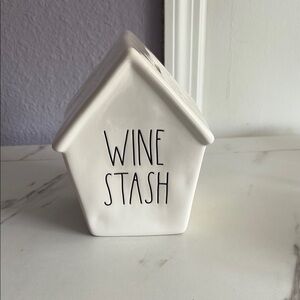Charming Rae Dunn house-shaped decor. Features 'Wine Stash' text. Perfect for wine lovers. Excellent condition