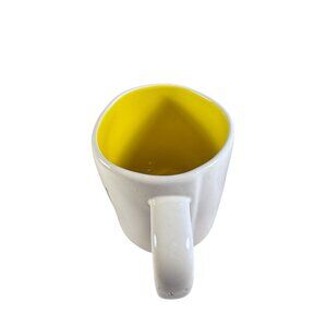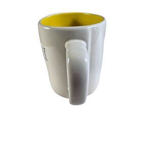 Enjoy a cozy tea moment with this artisan-crafted Rae Dunn mug. Its vibrant yellow interior adds cheer, while the ergonomic handle ensures comfort.