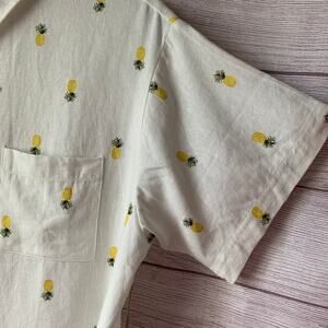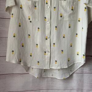 Rae Dunn Women's Linen Pineapple Print Button Up Shirt Short Sleeve Collar Large