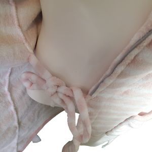 Women's Striped Fleece Embroidered Graphic "LOVE" Robe Pink