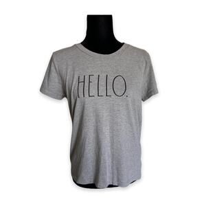 Rae Dunn Womens Tee Size Medium Gray Hello Minimalist Top Short Sleeves