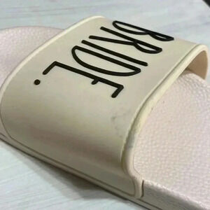 Size 9 slides - all rubber and bride is raised in black. These have some scuffs pictured. Preowned never worn condition please check all pictures.