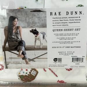 Rae Dunn by Enchante Merry Christmas Gingerbread House Candy Cane Queen Sheets.