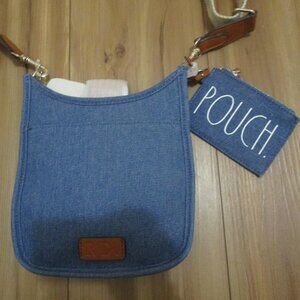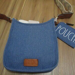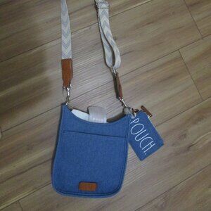 Rae Dunn canvas small crossbody denim chambray NWT leather accents BOHO strap