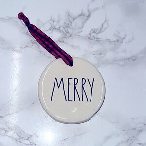 Rae Dunn ceramic Merry Holiday Ornament with Red Ribbon