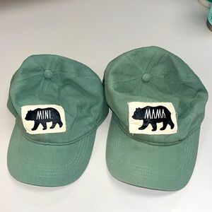 Rae Dunn pair of green baseball hats, mama bear & mini bear one size