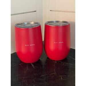From Rae Dunn. This set of two Red Stainless steel insulated wine glasses, 12 oz capacity on each. one glass says "Love You", the other "Love You More"