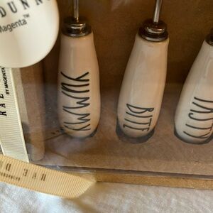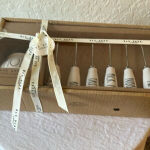 Rae Dunn: set of 6 rounded cheese holder & picks- wear on box