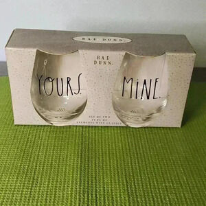 Rae Dunn set of two stemless wine glasses 19 FL oz NIB