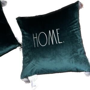 Rae Dunn velvet emerald Green “Home” Decorative Pillows