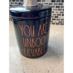 7 inch high whimsical ghost rae Dunn Halloween accent jar includes little cute, whimsical ghost  perfect for candy, cotton balls, Q-tips, etc comes from a smoke, free home. We’ll pack with Care.