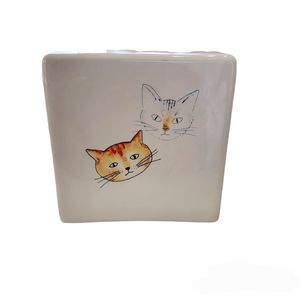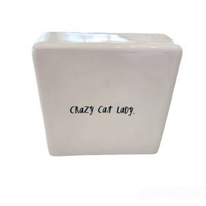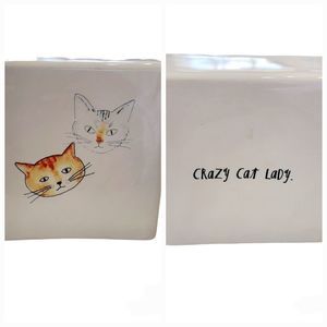 Rae Dunn Crazy Cat Lady Tabby & White Cat Decorative Block Double Sided ceramic