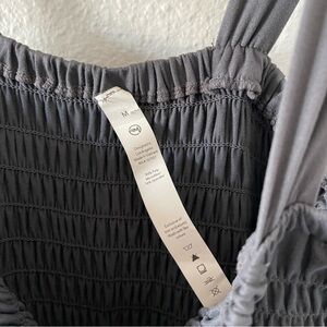 Rae Mode jumpsuit, gray wide leg jumper, women's sleeveless smocked jumpsuit, casual summer outfit, medium size one piece, comfy lounge jumpsuit, women's gray romper style, versatile everyday wear