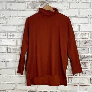 Rae Republic Burnt Orange Fall Drop Shoulder Long Sleeve Textured Mock-neck Top