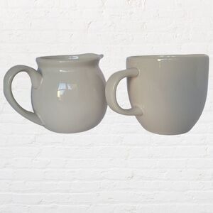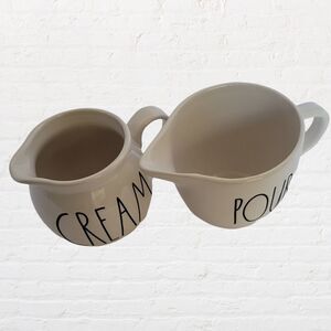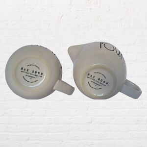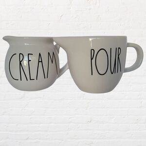 Rae Dunn Cream and Pour Pitchers/Mugs, White with Black Lettering, 3.5" tall