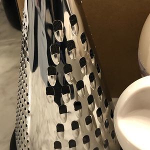 New in box. Rae Dunn 3 piece grater set. 1 grater with 3 different sized grating holes, 1 slicer, and 1 chopper.