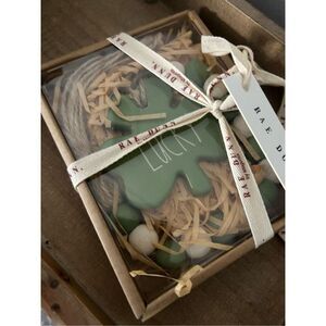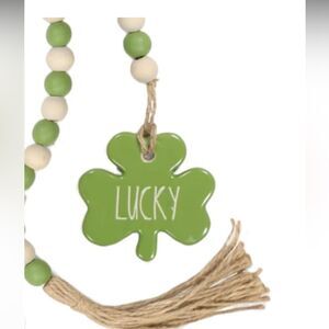 Rae Dunn LUCKY shamrock decorative beads Ceramic shamrock with wood beads