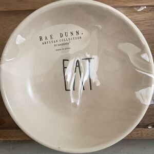 Wood tray has indenting for each bowl and there is a non slip ring on the bottom of each bowl