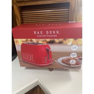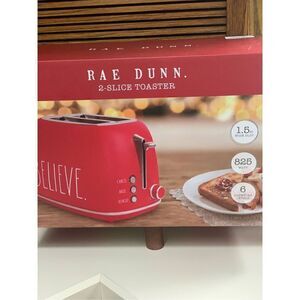 RAE DUNN "BELIEVE." Red Two-Slot Retro Style Toaster.