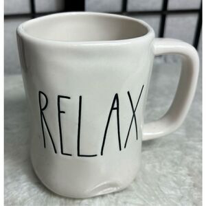 Collectible Rae Dunn Relax Coffee mug approximate measurement 5” tall 16 ounce cup