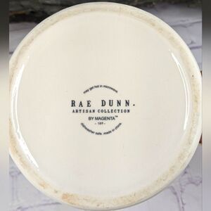 “Perfectly imperfect. Rae Dunn, a California native, has been artfully crafting with clay since 1994 and she has worked with Magenta for many years developing lines of products that are sold nationwide. Her style is inspired by the Japanese aesthetic of wabi-sabi, which is sometimes described as beauty that is “imperfect, impermanent, and incomplete.” This manifests in glazes that might have small bumps and grooves but coupled with crisp typography and prints, it creates a sense of imperfect balance between natural and contemporary. It’s a simple charm that evokes a sort of quiet grace.”