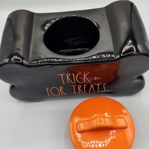 Rae Dunn Halloween TRICK FOR TREATS DOG bone shape treat jar