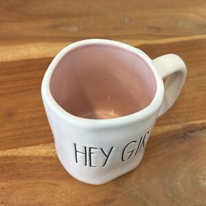 Rae Dunn Hey Girl Mug. Such a great size and very comfortable to hold. pink on the inside!