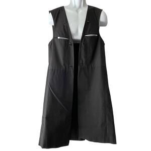 Black Cotton SB Long Slim Blazer with Removable Inner Long Vest Layer