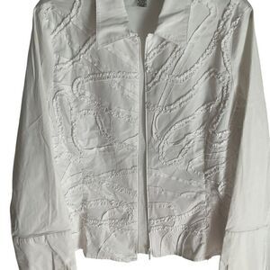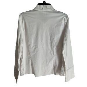 Rafael Blouse Zip Front Collar in White with Front Ruffled Swirl Design Long Sleeves Slit Cuffs Women Size 16 Spring Fun Work Casual