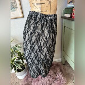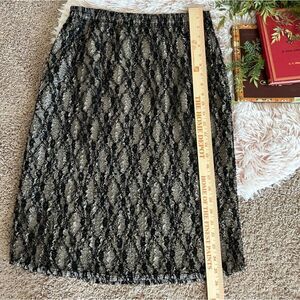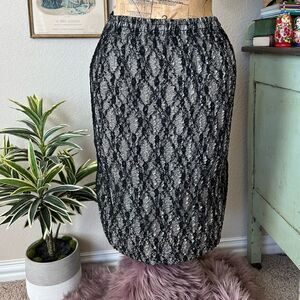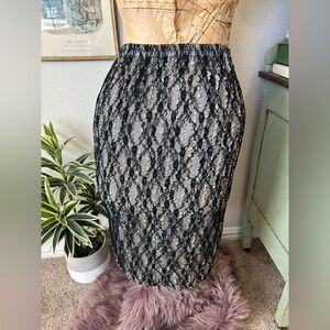 Rafael Cream Black Crinkle Bubble Lace Mesh Stretch Pull On Pencil Skirt Sz M
