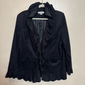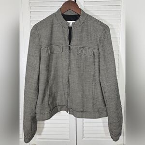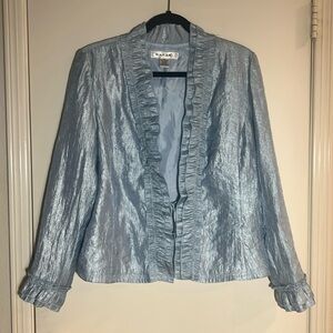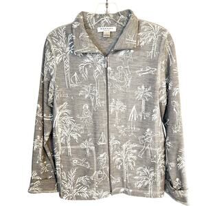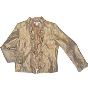 Chic paisley collar-less jacket from Rafael. Green and brown paisley design. Buttons up with six knotted fabric buttons. Darting in chest. Dry clean only. EUC!