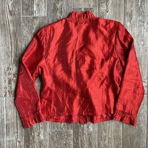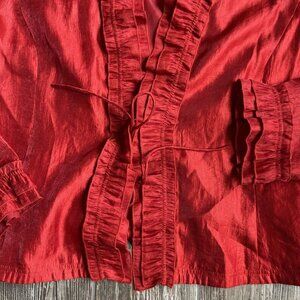 Rafael Jacket Womens 16 Jacket Long Sleeve Red Ruffle Tie Front Metallic Shiney