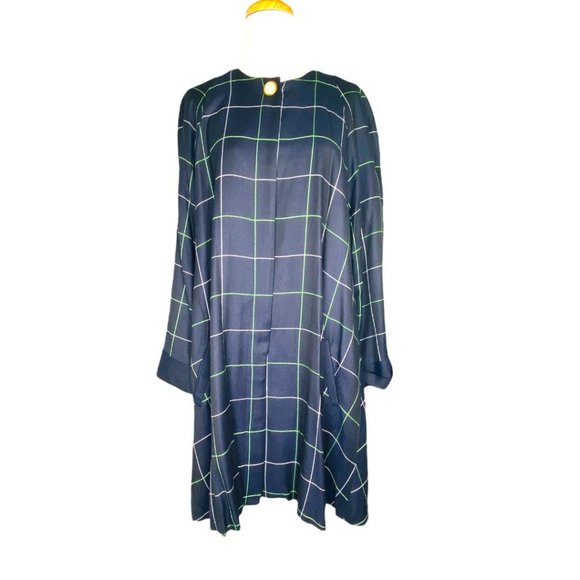 Rafael Reclaimed Swing Drape Coat Mid-length Vintage Navy Window Pane Plaid 14W