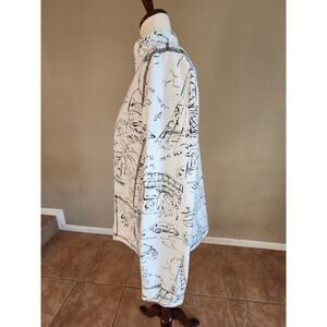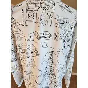 Black and White Full Zip Jacket in Size XL. Travel Theme. Paris, Boats, Café, etc... In great preowned condition. Smoke free home.
