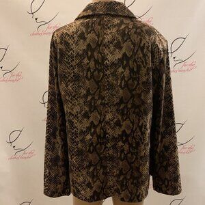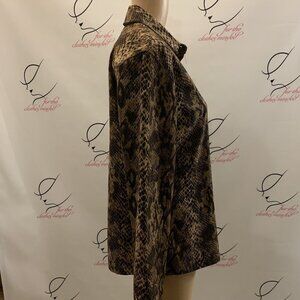 Rafael. Sz Small. Shirt or light weight Jacket. Animal Print. Long Sleeve. Side slits. Center back 25". Sleeve 22.5". Bust 38". Poly/spandex. Excellent pre-loved condition. No spots, tears or damage.