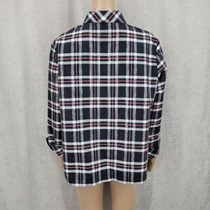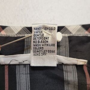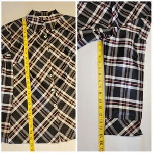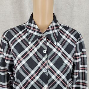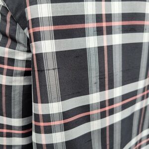 Rafael Silk Plaid Button Up Shirt Blouse Black White Pink