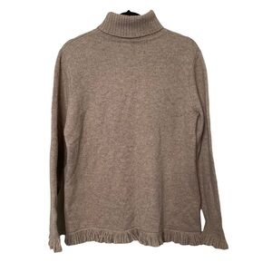 Rafaella 100% Lambswool Turtleneck Sweater Size M Fringes Neutral Western Boho