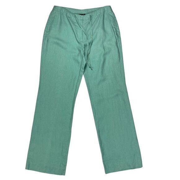 - Description: Rafaella 100% Linen Straight Leg Pants Womens 8 Green Drawstring Casual Coastal