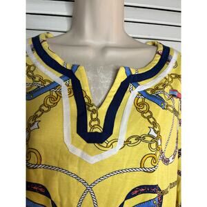 Rafaella 100% cotton equestrian look knit top yellow/navy XL Classic