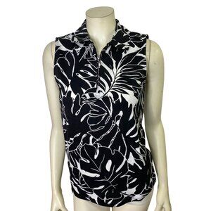Rafaella $49 Sleeveless Black & White Leaf Print Collared Polo Shirt XL NWT