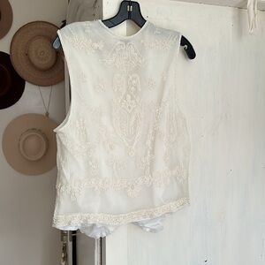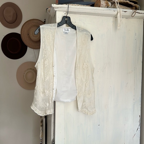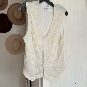 Rafaella Vest Creme Beaded Collarless V-Neck Hook Eye Close Lined Size M