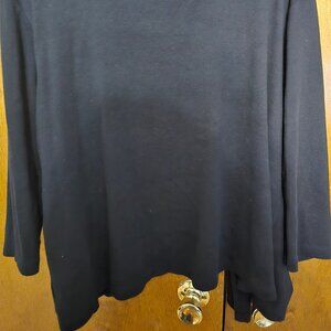 This listing is for a Rafaella black beaded sweater in size 3X. Although pre-owned, this sweater is in excellent condition. It looks like it was never worn. All beading, braiding and buttons appear to be intact and like new. The sizing appears a little small for 3X as stated on the label so I would categorize this more like between 2X and 3X. The material, exclusive of the beading is 100 percent cotton knit. The sleeves are 3/4th length. The length of the sweater from the back neckline to the bottom of the hem is approximately 23 inches and the arm pit to arm pit measurement of the sleeve is approximately 13 inches. Please see photos. If you have any further questions, please e-mail.