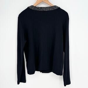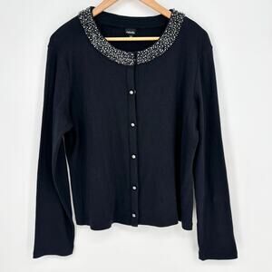 Rafaella Black Pearl Collar Button-Down Black Cardigan Sweater Size XL