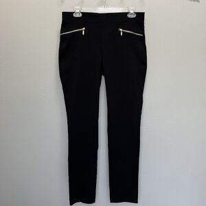 Rafaella | Black Pull On Ankle Pants Comfort 10P Straight Gold Zipper Pockets