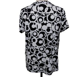 Rafaella | Black White Circle Print Short Sleeve Top | Size L
