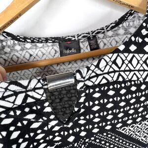 Like new Rafaella black & white patterned t-shirt with metal keyhole neckline detail. 100% cotton. Size Medium.