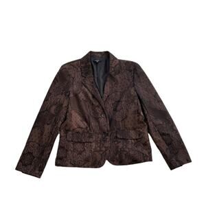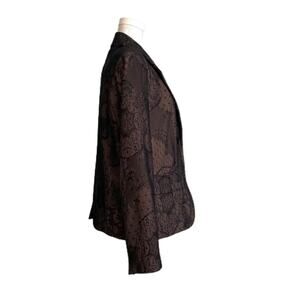 Rafaella Brown Black Lace Overlay Button Front Flap Pockets Business Office Blazer Jacket